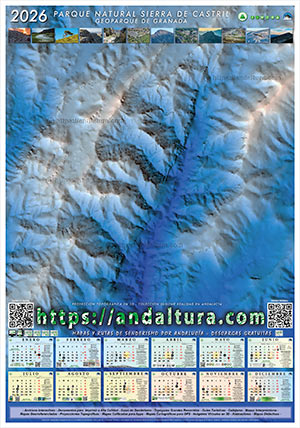 El calendario abarca no solo el Parque Natural Sierra de Castril, sino también parte del Parque Natural Sierra de Cazorla, Segura y Las Villas y una pequeña sección del Geoparque de Granada, ofreciendo una visión singular de estos espacios naturales.