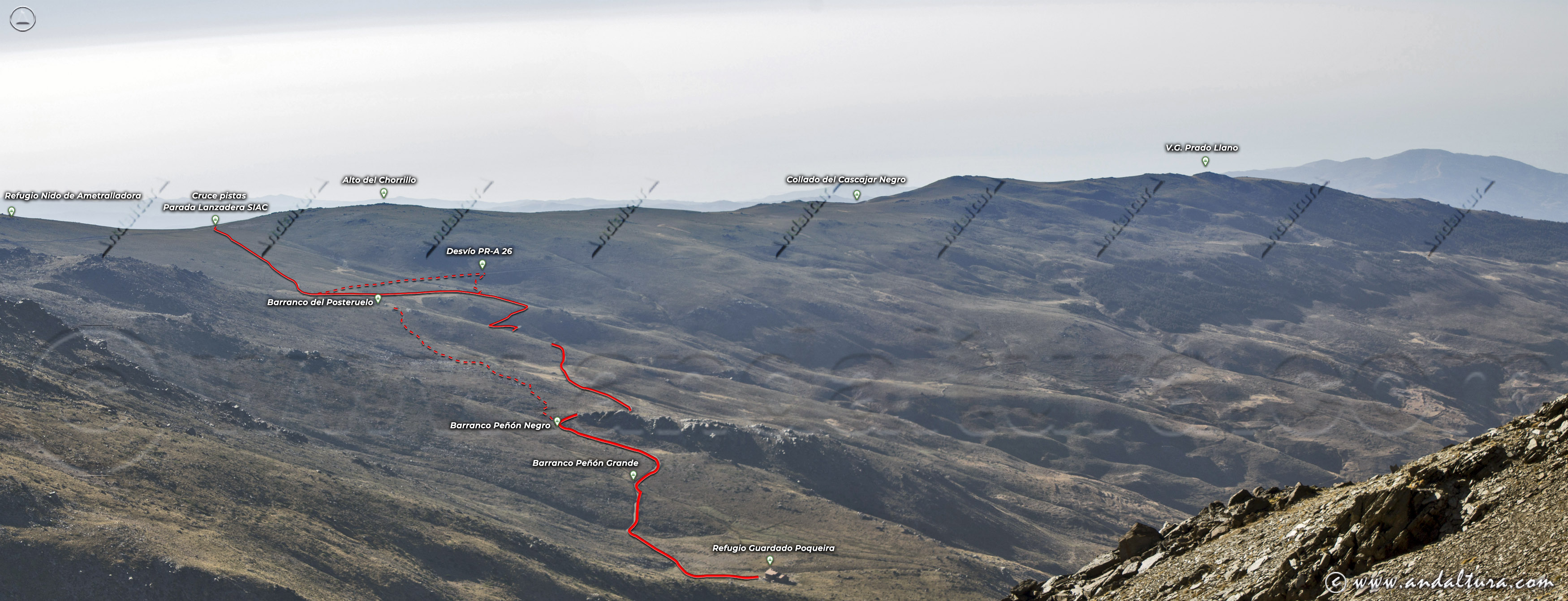 Sin embargo, esta ruta es la más usada para ir al Refugio por los usuarios del Servicio de Interpretación de Altas Cumbres de Sierra Nevada – SIAC -, de la vertiente sur.