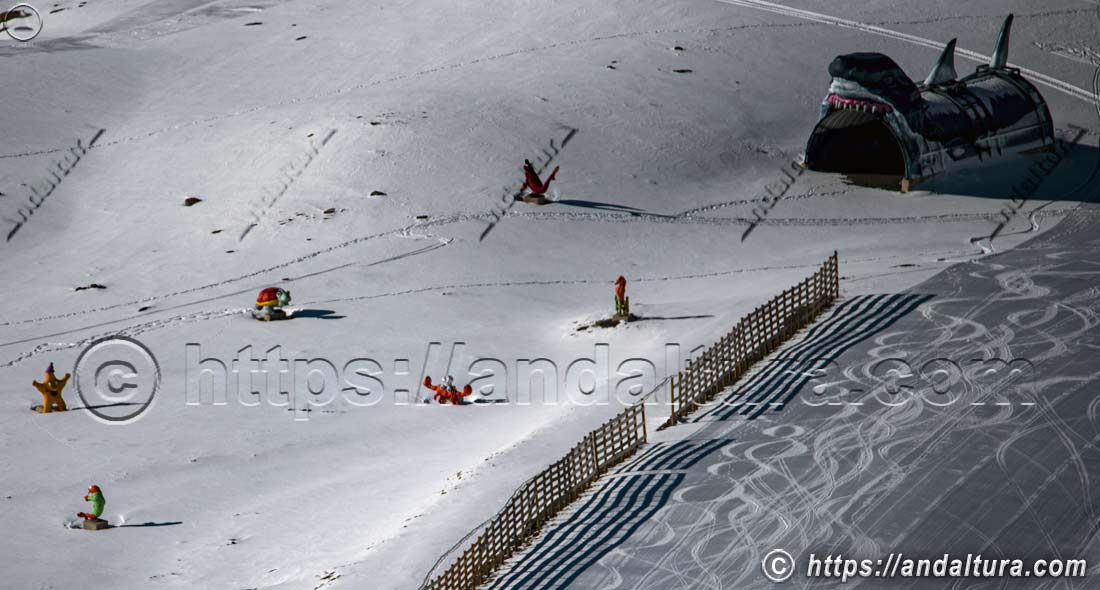 Por otro lado, un poco más abajo, en el zona de principiantes de Borreguiles, se encuentra la pista Kid Fun Trail, junto a las alfombras de iniciación.