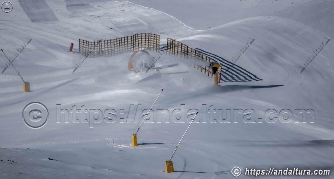 El Área Borreguiles, como eje principal de la Estación de Esquí, cuenta con las infraestructuras más avanzadas y extensas de producción de nieve artificial.